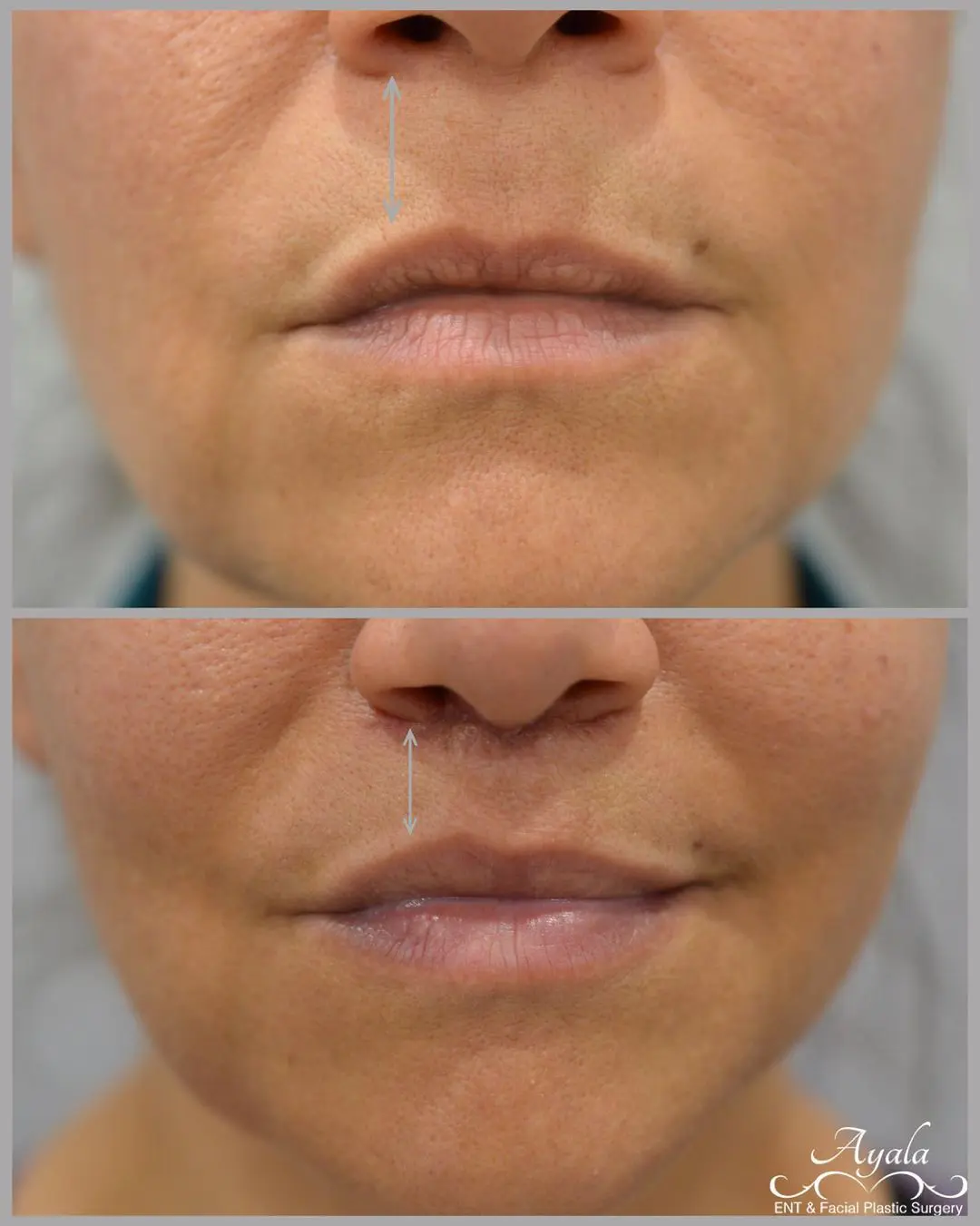 No recovery or downtime is needed after your lip lift. The lips may feel tight for a day or two. Dr. Ayala provides a schedule of follow-up treatments to maintain the new look of your lips. Other potential complications that could arise include: